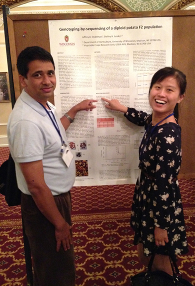 Dr. Yi Wang and Dr. Rosyara (Postdoc fellow with Dr. Jeffrey Endelman) at the PAA meeting (July 28th to 31st, Spokane, WA). Both looked very excited to see peers in the potato research community. They were currently working on the SCRI-Acrylamide grant.
